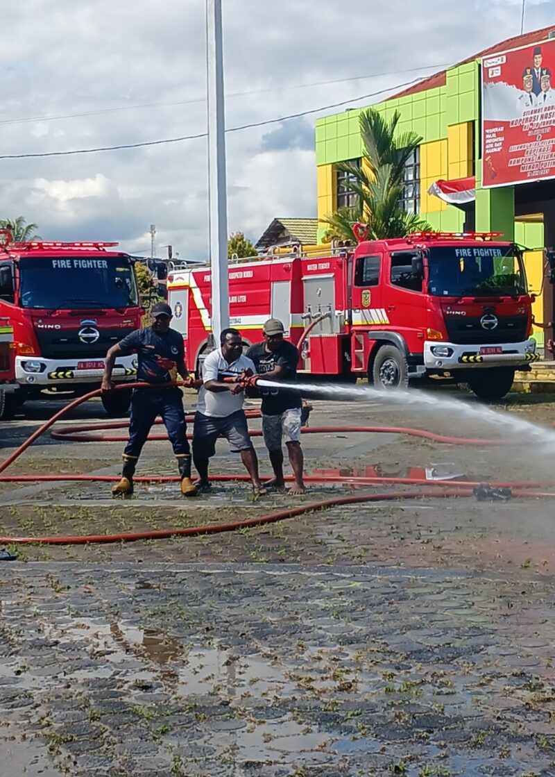 TIMIKA | Guna menciptakan lingkungn kerja yang aman, nyaman dan bersih, Plt. Kepala Dinas Koperasi dan UMKM Kabupaten Mimika, Samuel Yogi melakukan pembersihan halaman dilingkungan dinas dengan mengerahkan empat (4) unit mobil pemadam kebakaran.