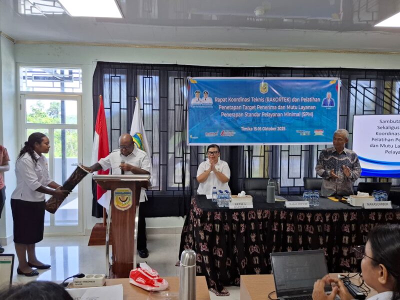 TIMIKA | Badan Perencanaan Pembangunan Daerah (Bappeda) Kabupaten Mimika menggelar Rapat Koordinasi Teknis (Rakortek) dan Pelatihan Penetapan Target Penerima dan Mutu Layanan dalam Penerapan Standar Pelayanan Minimal (SPM).