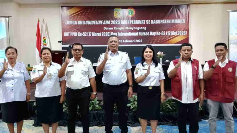 TIMIKA | Dinas Kesehatan Kabupaten Mimika menggelar Lomba Bantuan Hidup Dasar (BHD) GUIDELINE AHA tahun 2025 bagi Perawat se-Kabupaten Mimika dalam rangka menyongsong HUT Persatuan Perawat Nasional Indonesia (PPNI) ke-52 dan Internasional Nurses Day ke-62 di hotel Horison Ultima, Rabu (18/2/2026).