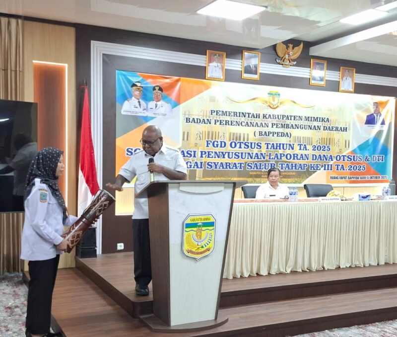 TIMIKA | Badan Perencanaan Pembangunan Daerah (Bappeda) Kabupaten Mimika menggelar Focus Group Discussion (FGD) Dana Otonomi Khusus (Otsus) Tahun Anggaran 2025 dan Sosialisasi Penyusunan Laporan Dana Otsus dan Dana Tambahan Infrastruktur (DTI) sebagai Syarat Salur Tahap III TA 2025. Kegiatan tersebut berlangsung di Kantor Bappeda Kabupaten Mimika pada, Rabu (15/10/2025).