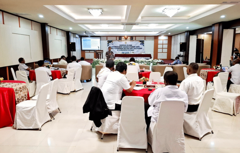 TIMIKA | Pemerintah Kabupaten Mimika melalui Bagian Pemerintahan Sekretariat Daerah (Setda) Mimika menggelar Seminar Kajian Pembentukan Daerah Otonomi Baru (DOB) serta pemekaran Distrik dan Kelurahan di Kabupaten Mimika. Kegiatan tersebut berlangsung di Hotel Cenderawasih 66, Rabu (29/10/2025).