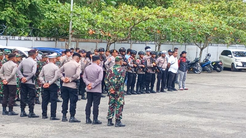 TIMIKA | Puluhan personel gabungan TNI-Polri dikerahkan untuk mengamankan aksi damai Pemuda Mimika bersatu di Kantor DPRK Mimika, pada Selasa (2/9/2025).