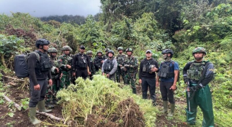 JAYPURA | Satgas Pamtas RI–PNG Yonif 751/Vira Jaya Sakti (VJS) bersama Satgas Prayudha dan Satgas Ketapang berhasil menemukan empat kebun ganja tersembunyi di Kampung Aldom, Distrik Oksibil pada Selasa (23/9/2025).