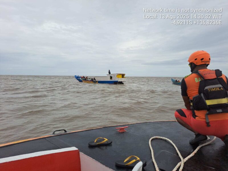 TIMIKA|  Tim SAR gabungan  berhasil mengevakuasi seluruh penumpang perahu susun yang mengalami mati mesin di muara Inauga.